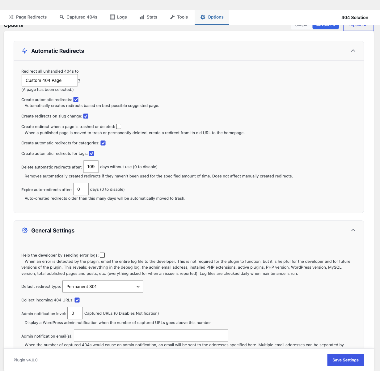 - Automatic, from day one. Install and activate. 404 Solution starts capturing and redirecting immediately. You can tune it; you don’t have to.