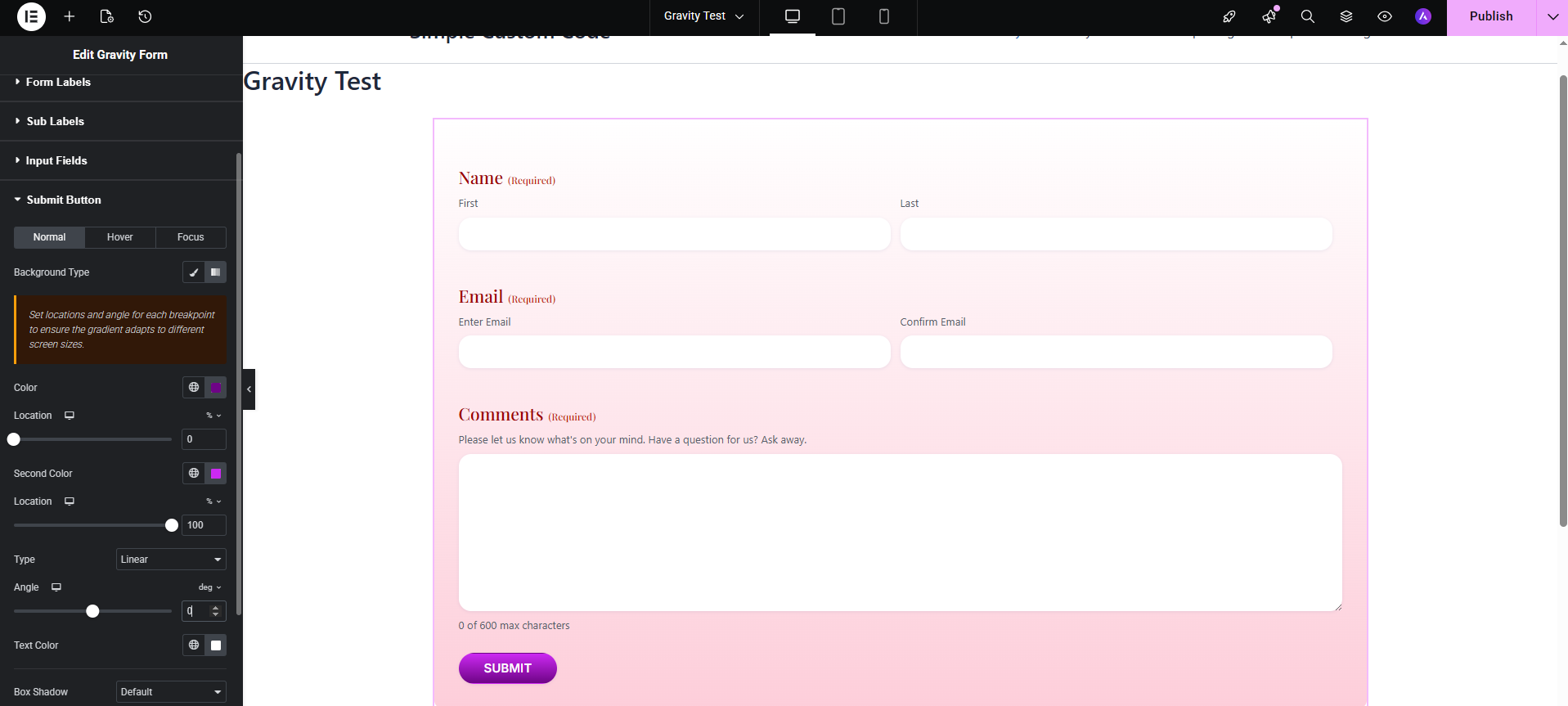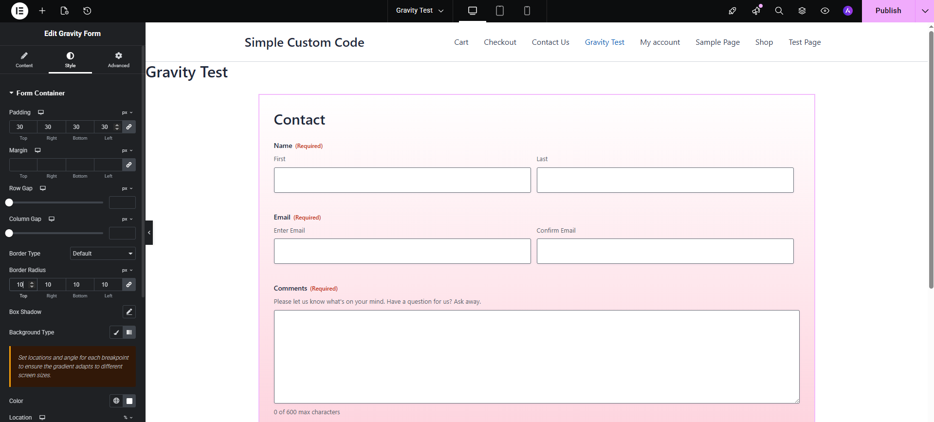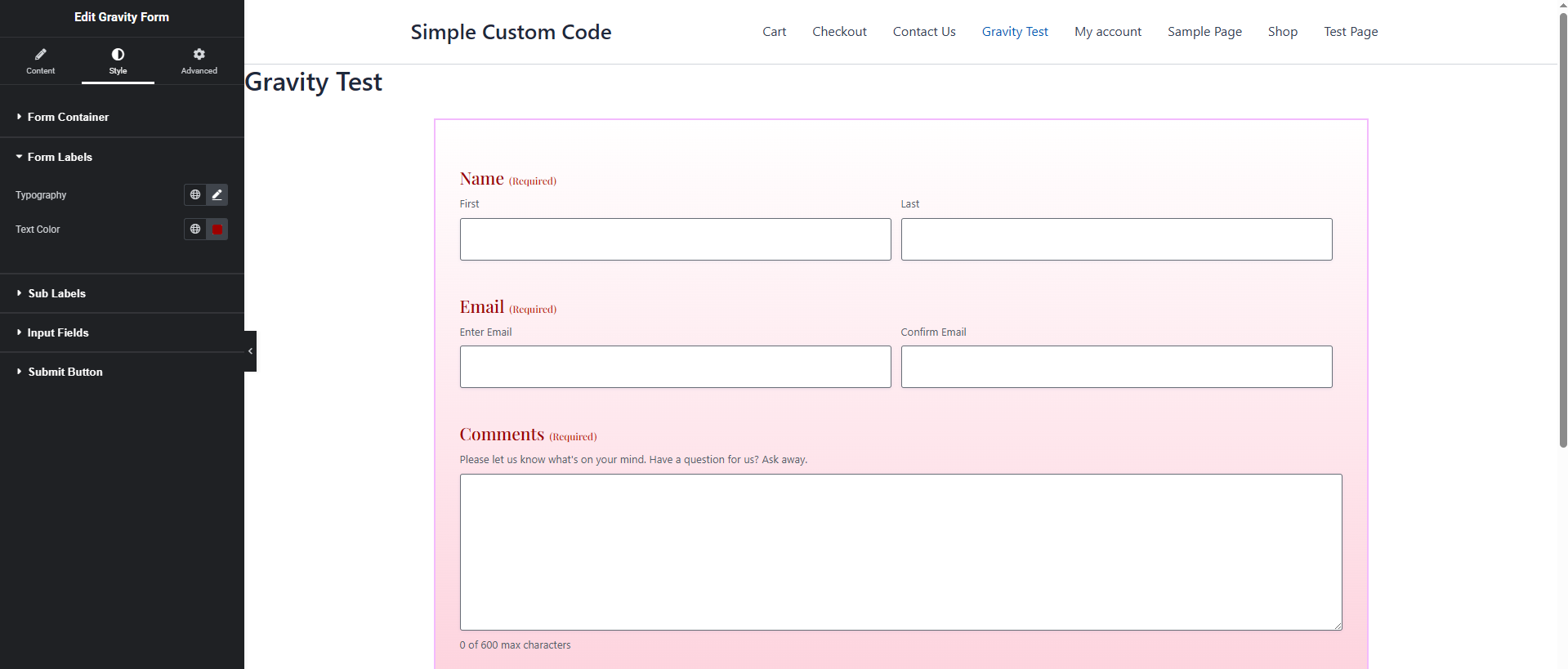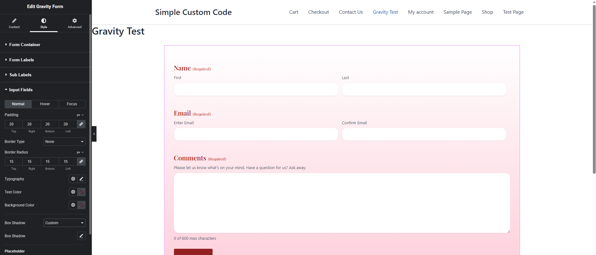 For users who want deeper, CSSβfree control over Gravity Forms (and other elements), check out our companion plugin Simple Custom Code β Custom CSS, JS, and HTML, Visual CSS Customizer. It includes a Gravity Forms Visual CSS Customizer that lets you tweak virtually every aspect of your form using interactive visual tools.